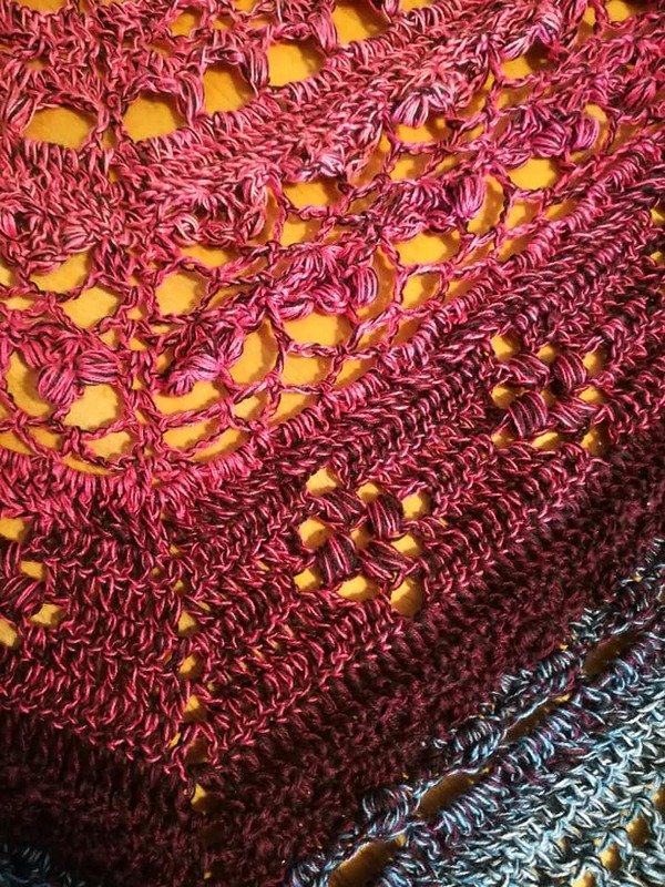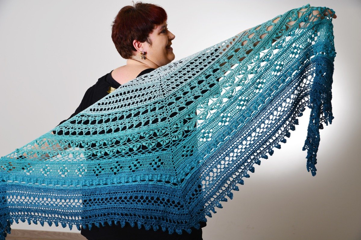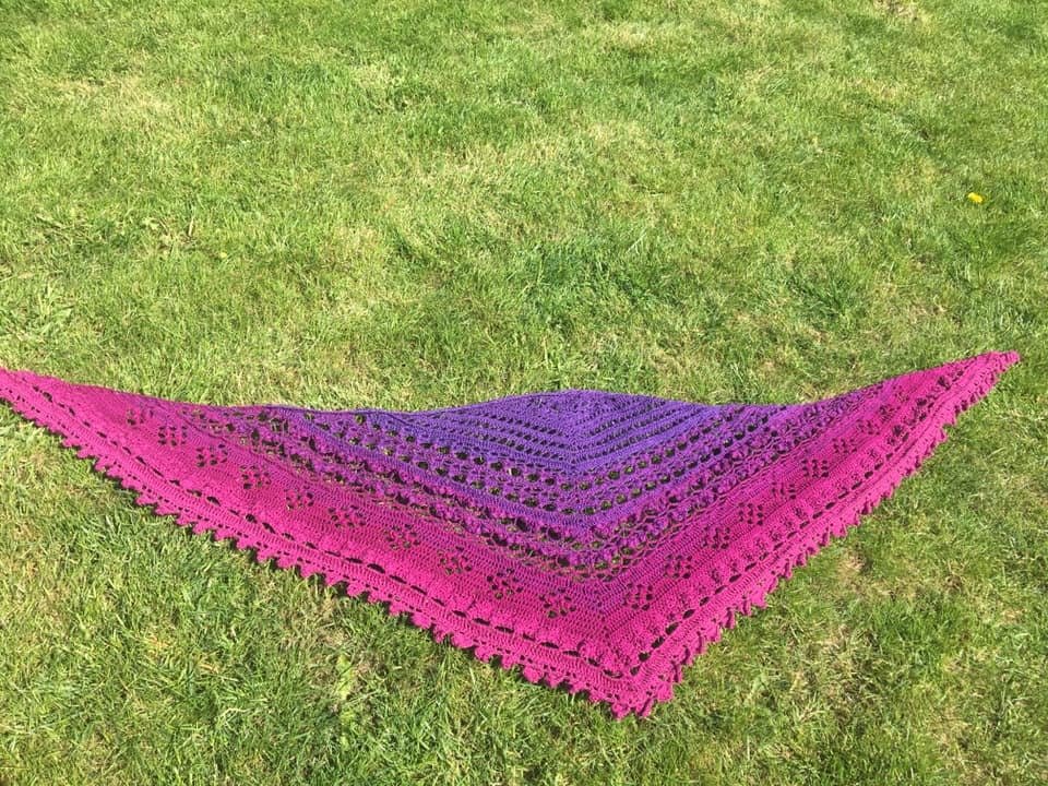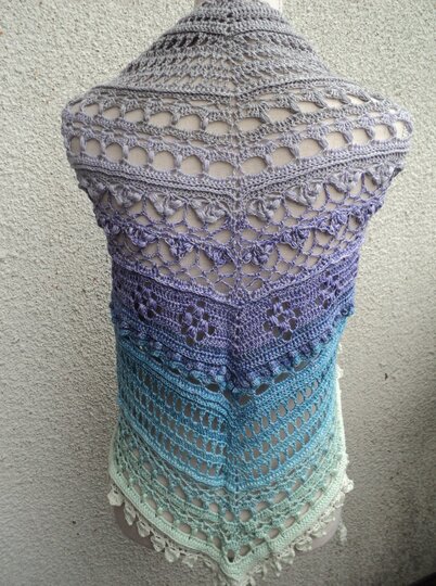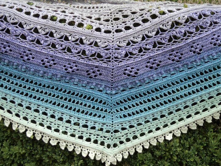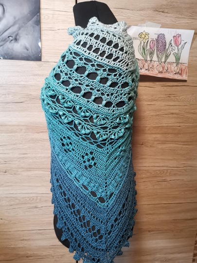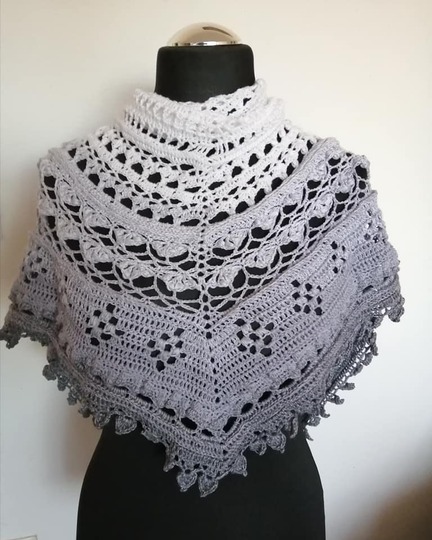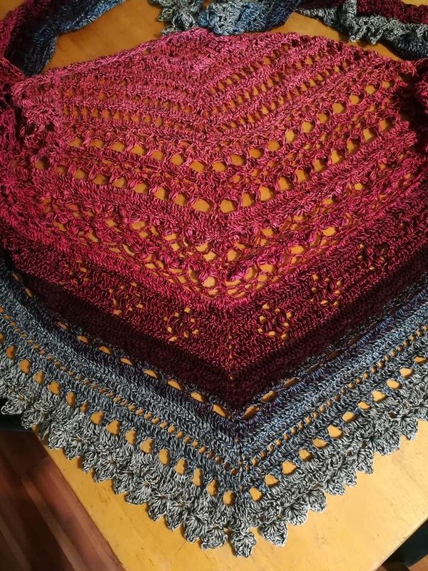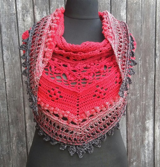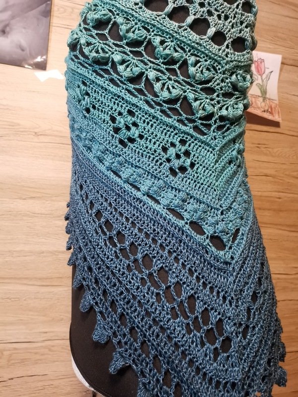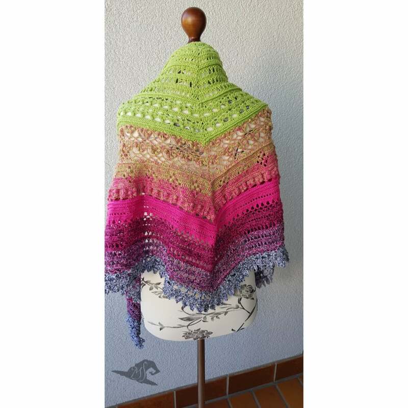 Hier erhältst du die Anleitung für ein eher flaches Dreieckstuch, das mit sehr abwechslungsreichen Mustern gearbeitet wird.