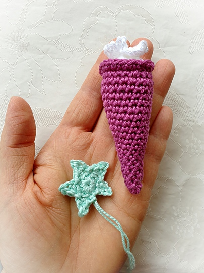Mit Schachenmayr Catania und Nadelstärke 2,5 mm wird die Maus ca. 21 cm groß und die Schultüte ca. 10 cm. Mit dickere Baumwolle und einer 3,5 mm Nadel wird die Maus vermutlich ca. 30 cm groß.