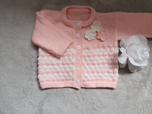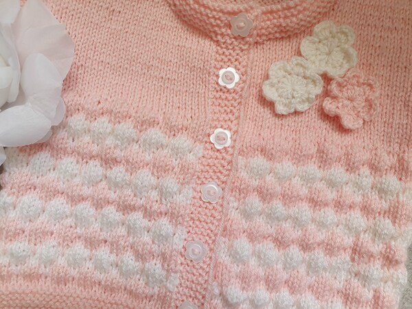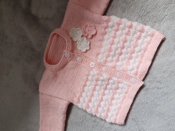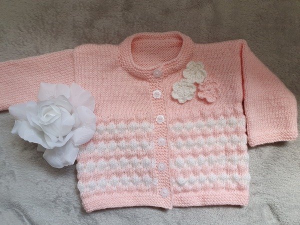 Über dieses niedliche, kuschelige Babyjäckchen in Rosa und Weiß im Bubblemuster freut sich jede Mama. Damit ist ihre kleine Prinzessin doch perfekt angezogen für die nächste Ausfahrt.