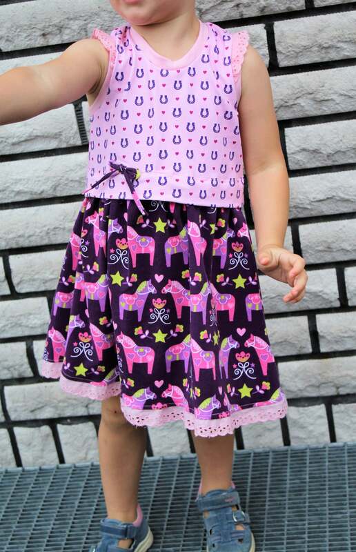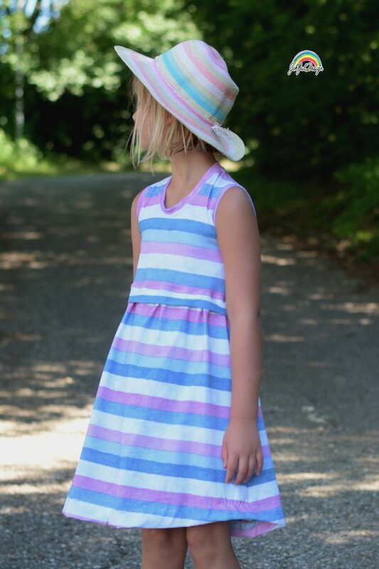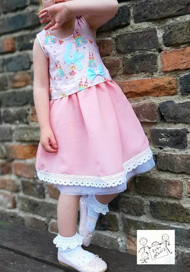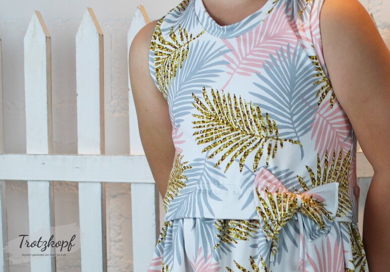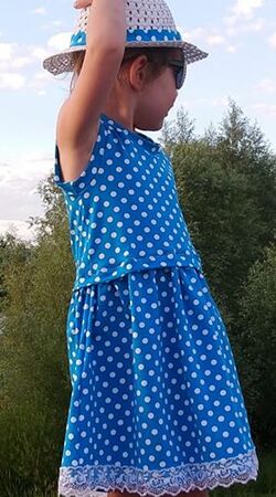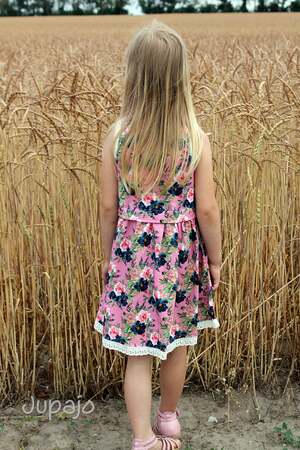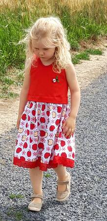 Einschulung, Geburtstag, Hochzeit – Anlässe für Kleider gibt es vor allem im Sommer unzählige. Genau dafür kannst du jetzt das festliche Kleid Vanessa nähen! Ein Schnitt, der durch verschiedene Stoffwahl immer wieder anders aussieht. Das Oberteil sollte zwingend aus Jersey oder gut dehnbarem Sommersweat genäht werden – beim Rockteil kannst du dich austoben: Jersey, Sweat, Webware, Spitzenstoff, Tüll… alles ist erlaubt =) . Lässt du Spitze und Tüll weg, so kannst du auch ein Sommerkleid für den Alltag aus diesem Schnittmuster zaubern – du bist also für alle Situationen ausgerüstet. Gr. 98 – 152 umfasst der Schnitt in Einzelgrößen, der zwingend nach der Körpergrösse des Kindes genäht werden sollte - er passt Kindern von 93 – 152 cm. Genähte Kleider nach diesem Schnittmuster dürfen in unbegrenzter Stückzahl gewerblich verkauft werden – eine gesonderte Lizenz wird nicht benötigt.