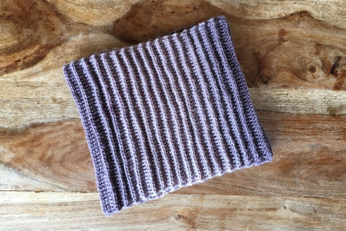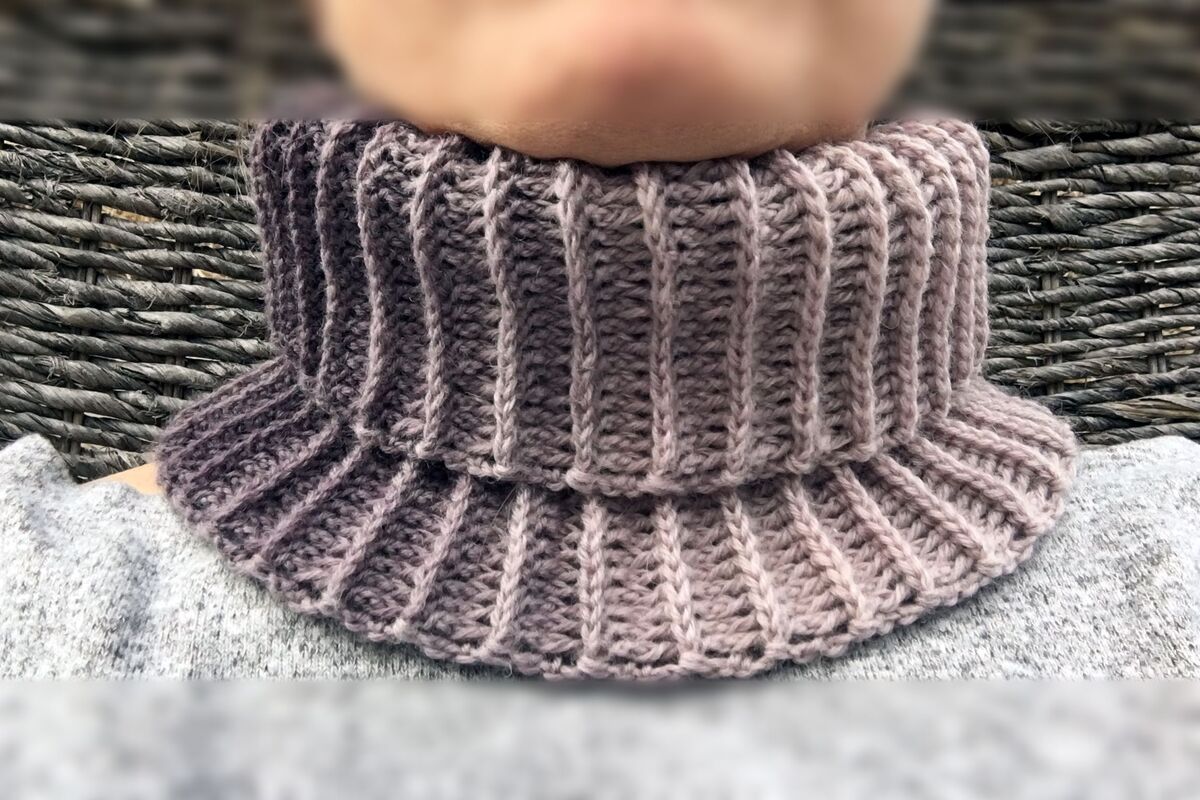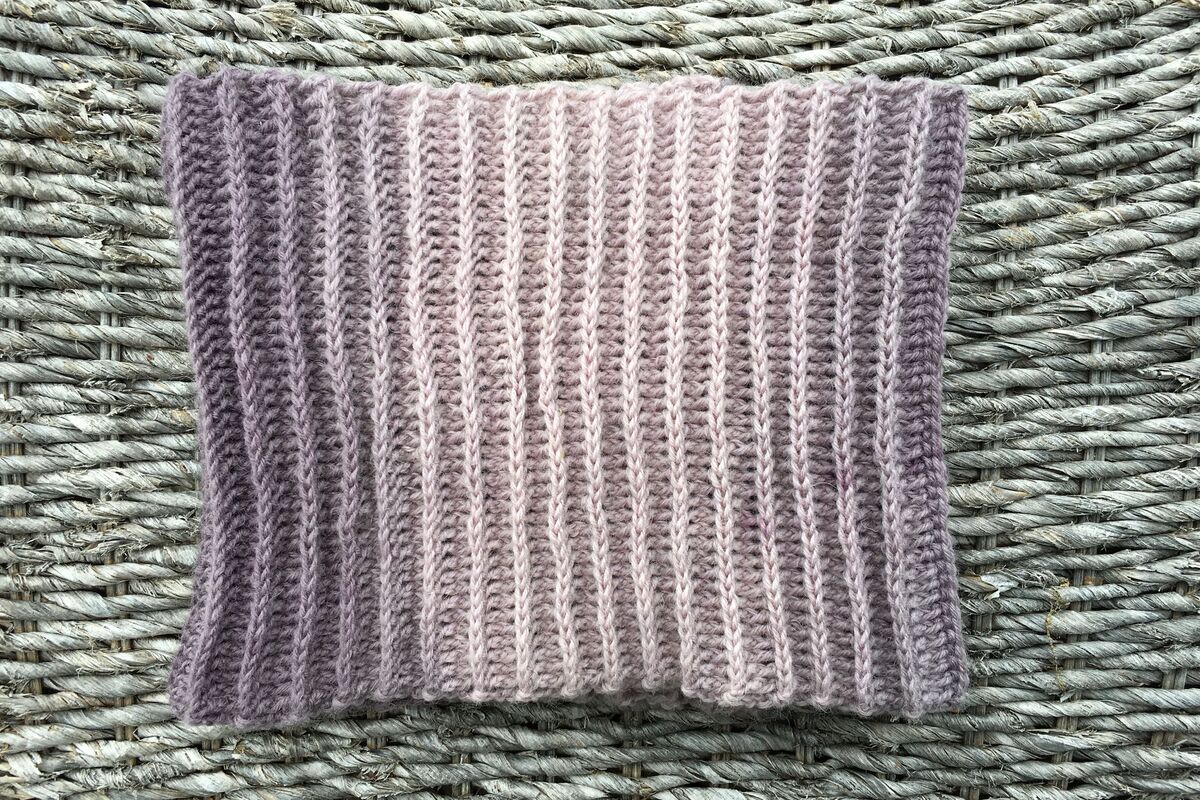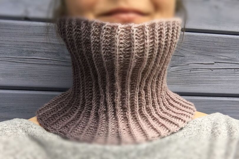 Ich empfehle dir, möglichst dünne Wolle zu verwenden. Das Muster sorgt dafür, dass der Loop ganz von allein voluminös wird.