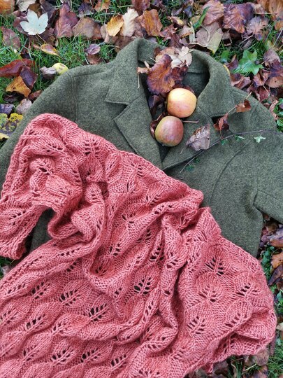 Dieses Tuch fühlt sich flauschig und weich an und ist mit seinem Blättermuster ein wunderbarer Begleiter - nicht nur im Herbst.