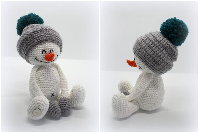 Wenn du mit Baumwolle (125m LL auf 50g) häkelst, wird dein Grinseschneemann ca. 17cm hoch (ohne Bommel).