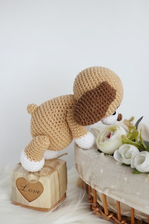 Mit dieser Häkelanleitung kannst du einen kleinen Amigurumi-Welpen basteln