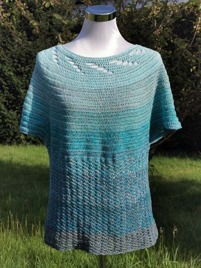 Das Lepakko Top wird von oben nach unten gehäkelt und lässt sich einfach auf die verschiedenen Grössen anpassen.