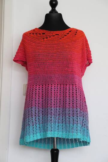 Der Verbrauch variiert etwas, da es auf die Nadelstärke, persönliche Häkelart und gewünschte Länge des Oberteils ankommt.