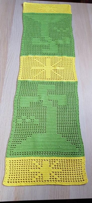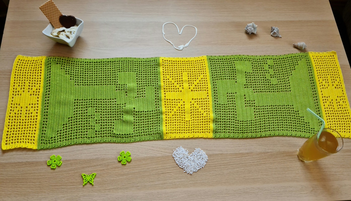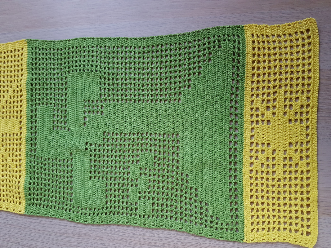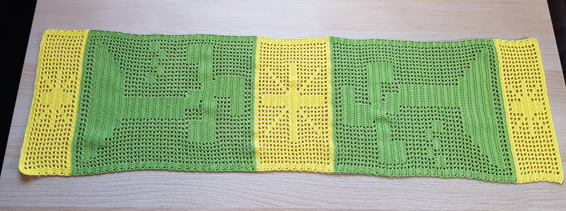 Ich habe den Läufer mit einer 3,0 Häkelnadel gehäkelt.