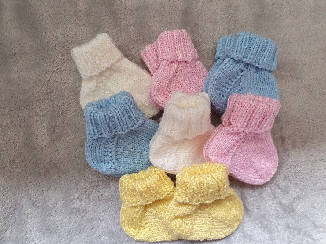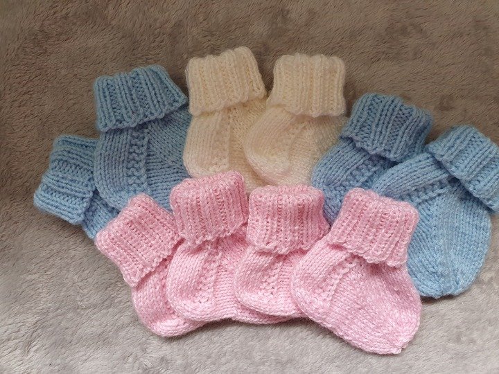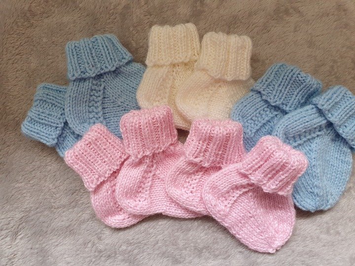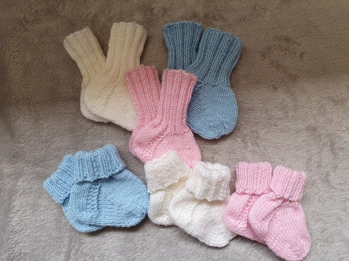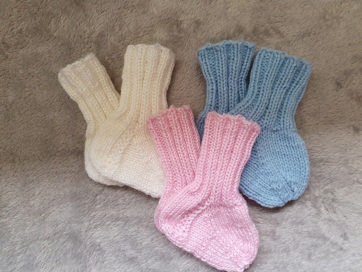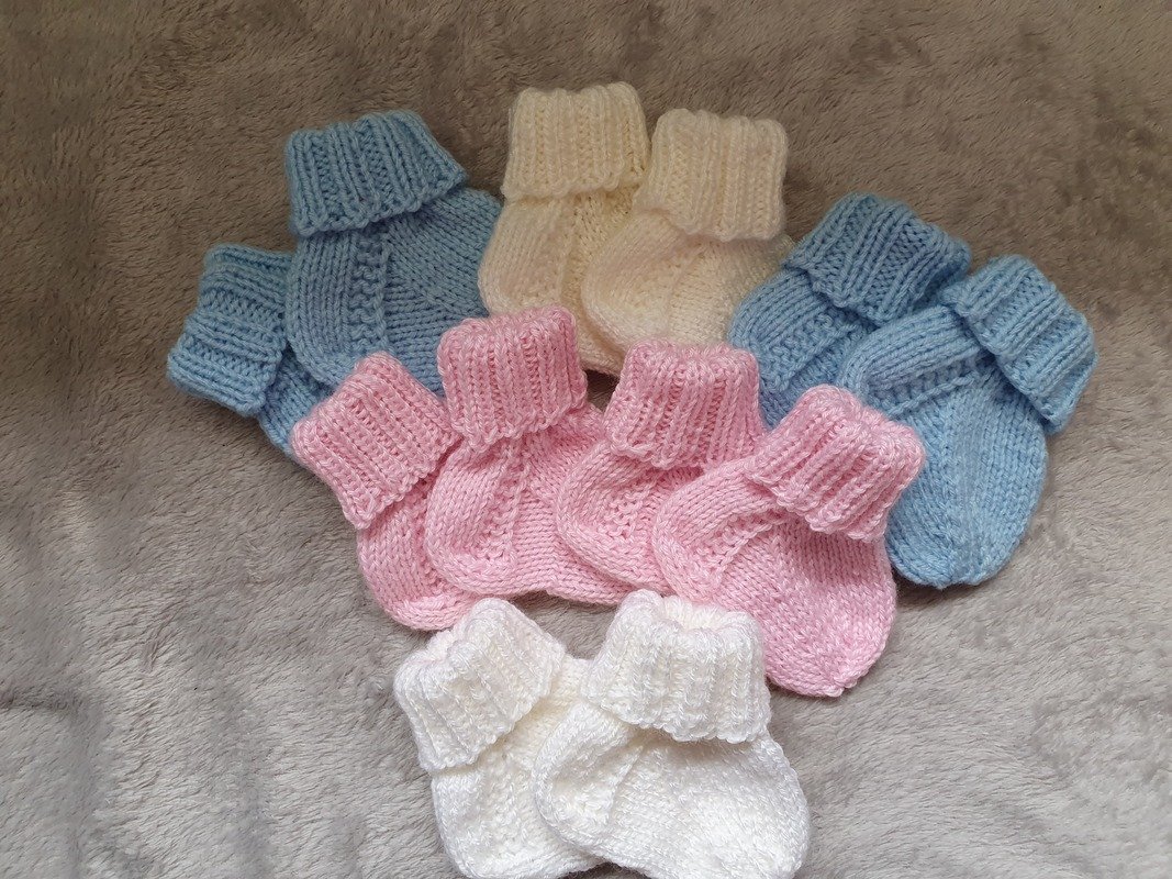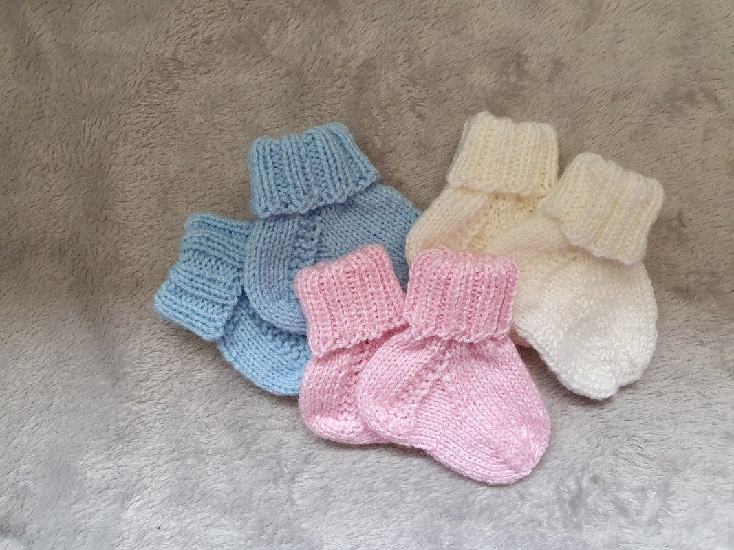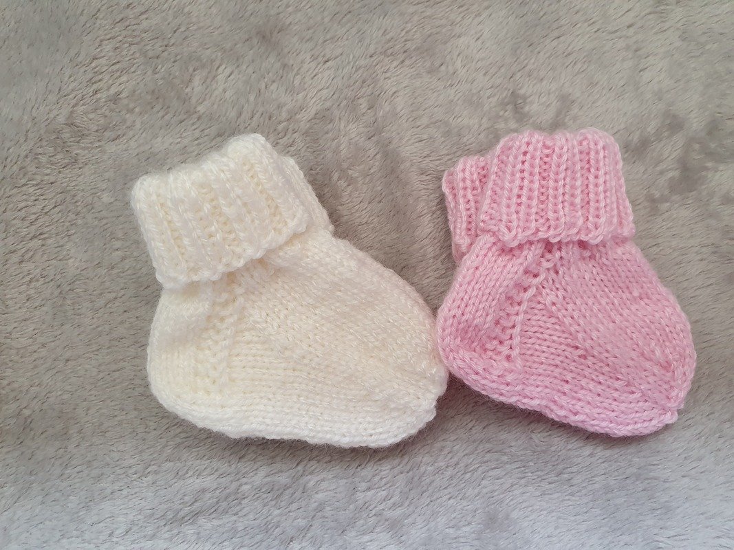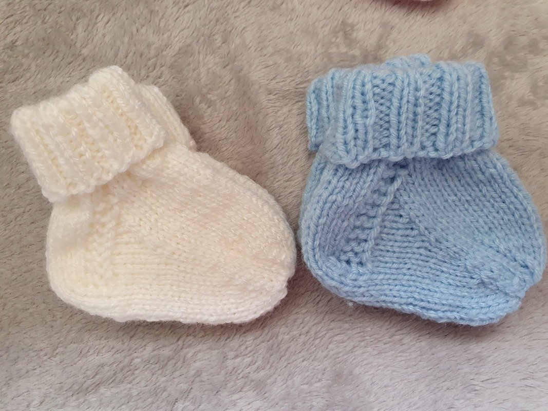Ich stricke die Söckchen aus kuscheliger Babywolle mit einem Nadelspiel Stärke 3.