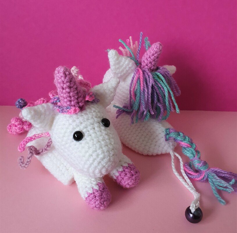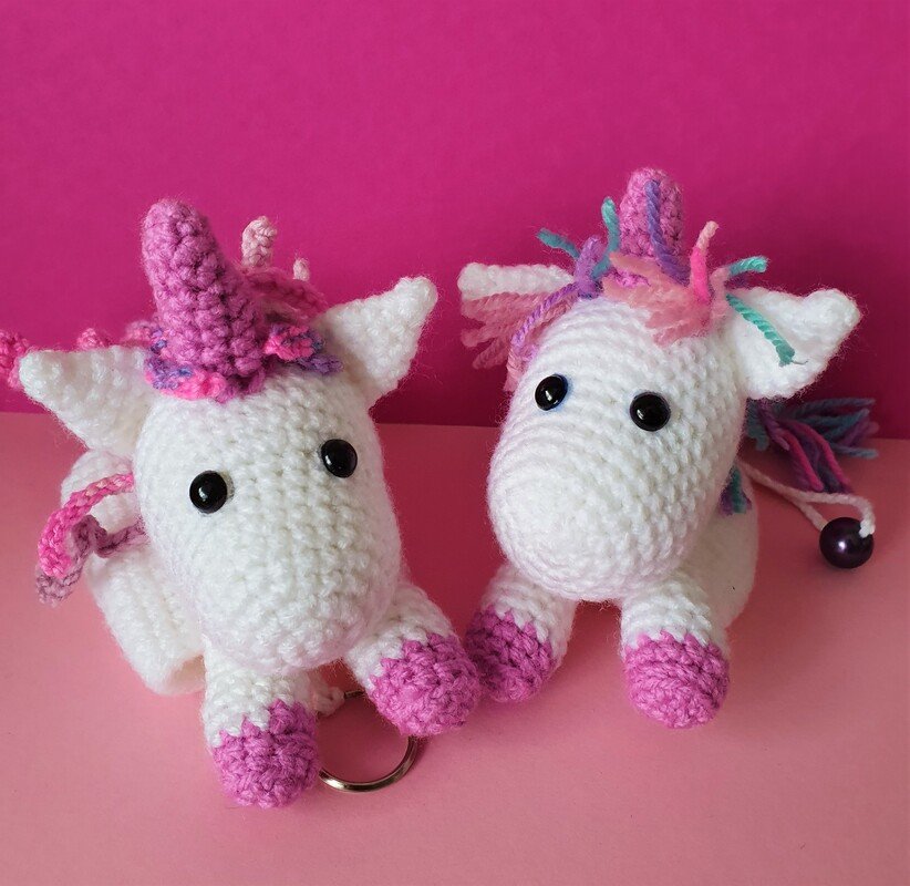 Das Einhorn besteht ausschließlich aus festen Maschen, Luftmaschen und Kettmaschen.