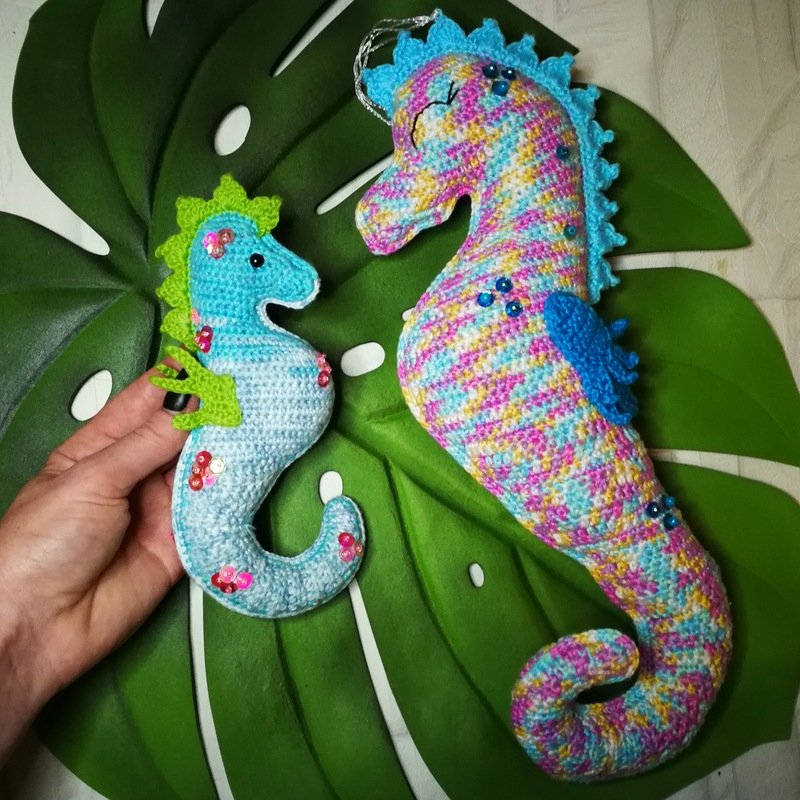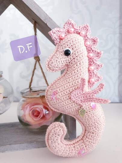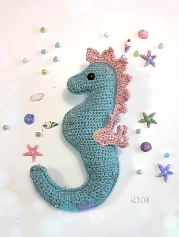 • Mit angegebenem Garn wird das Seepferdchen ca. 16 cm hoch.