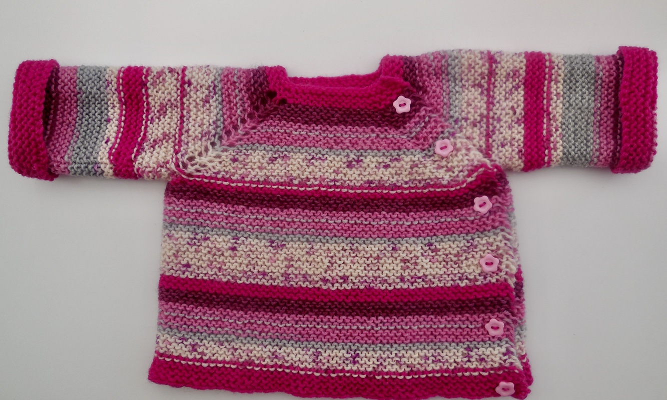 Das Babyjäckchen wird in einem Stück, ganz ohne Nähte in Hin- und Rückreihen gestrickt.