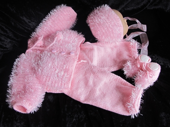 Strickanleitung für ein wunderschönes Set, 4-teilig für Babys & Reborns, Gr. 50 Das Set ist aus Schachenmayr Wolle gestrickt. Die Anleitung ist sehr genau beschrieben und mit vielen Fotos