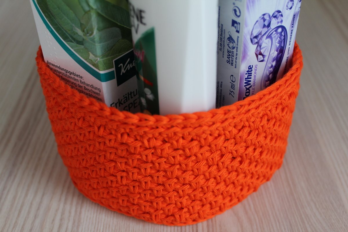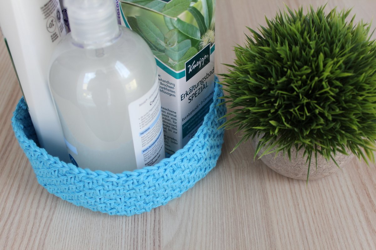 Die Grösse des Körbchens kann nach belieben bestimmen, in dem mehr oder weniger Runden des Bodens gehäkelt werden.