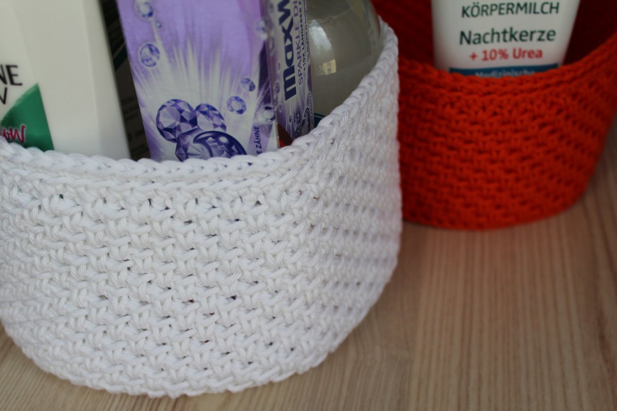 100 g dieser Baumwolle ausreichend für 2 kleinere oder 1 großes Körbchen.