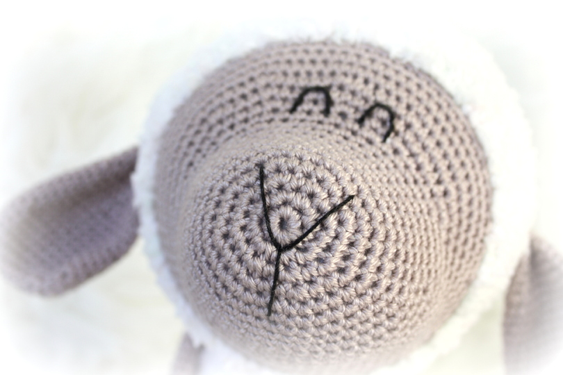 Wenn du mit Baumwolle (125m LL auf 50g) sowie Plüschwolle (153m LL auf 100g) häkelst, wird dein Grinseschaf ca. 20cm hoch.