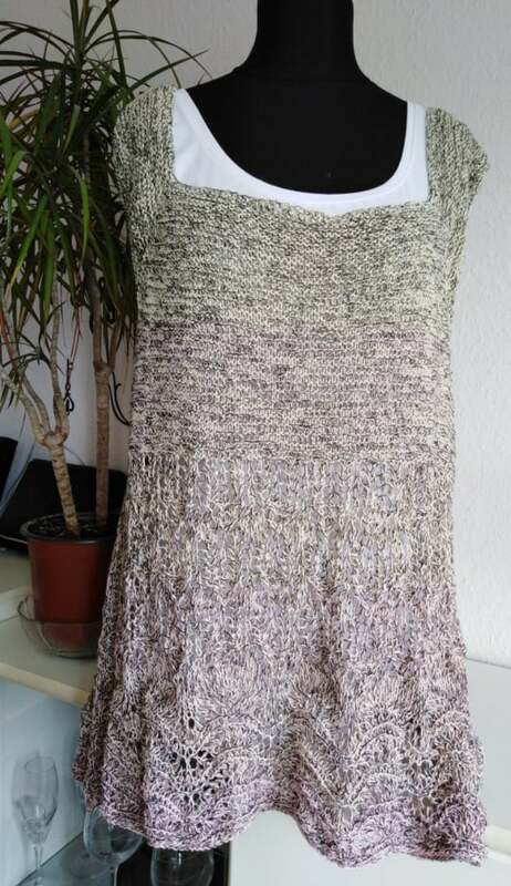 Ein wenig Strickerfahrung sollte man haben: gebraucht werden Anschlag, rechte und linke Maschen, Umschläge, am Anfang und Ende zusätzlich aufzunehmende Maschen und zusammen gestrickte Maschen (auch verschränkt). Wer den Ausschnitt noch verkleinern und eine Kante umhäkeln möchte, sollte über die erforderlichen Grundkenntnisse im Häkeln verfügen.