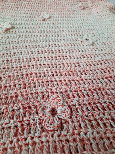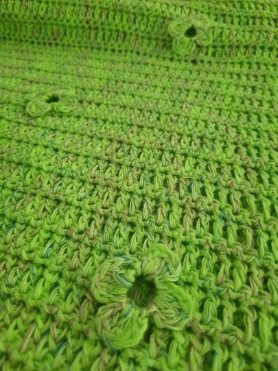 Die Blumen werden beim Häkeln gleich miteingearbeitet.