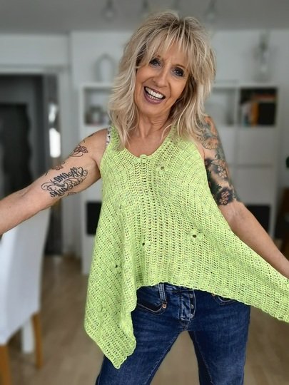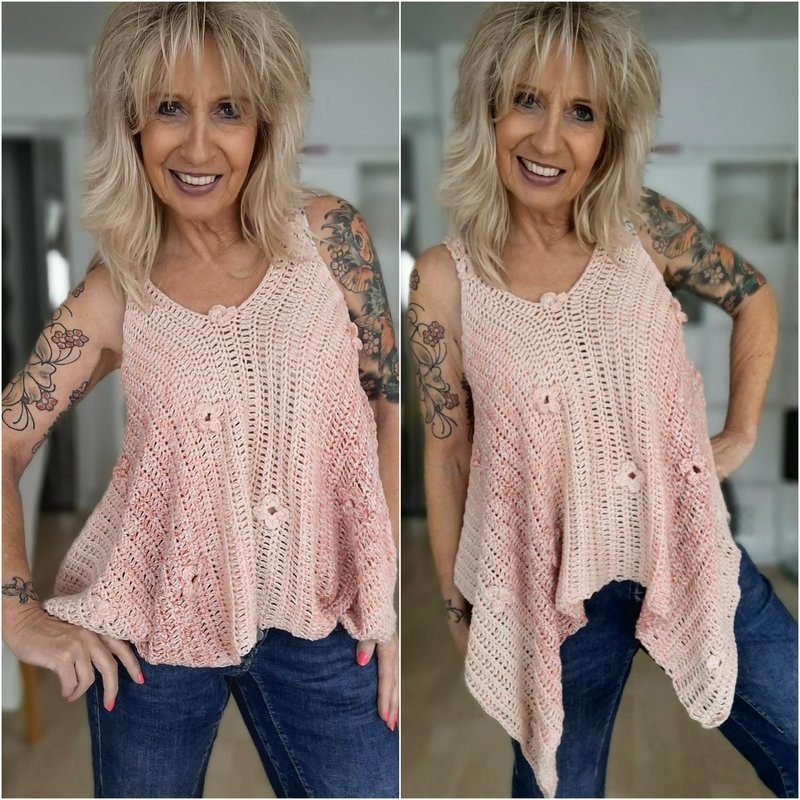 Das Top kann auch ohne Blumen gearbeitet werden.