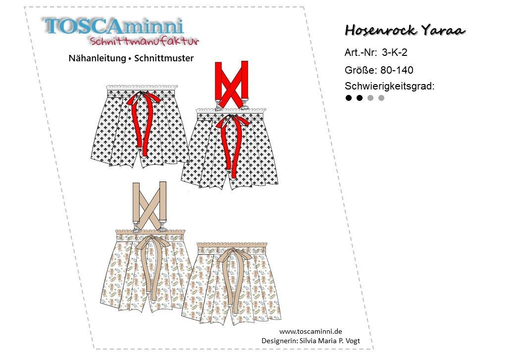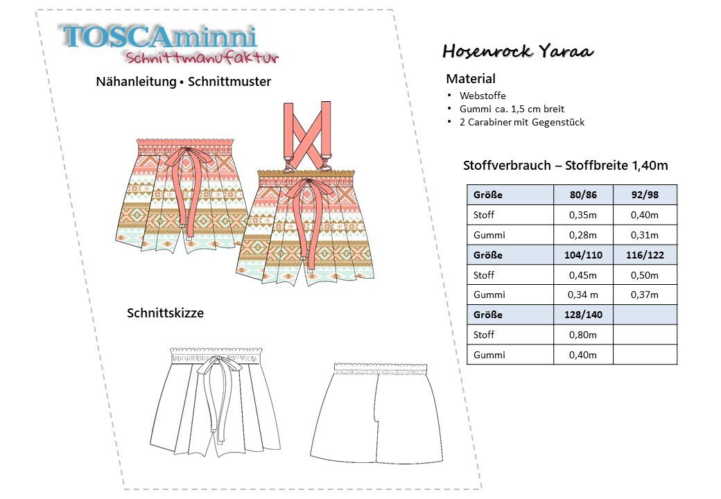 Mit dem Schnitmuster Yaraa nähst Du süsse Sommershorts im Paperback-Stil für Mädchen. Der Hosenrock für Kinder ist schnell genäht und kann beliebig variiert weren. Im Schnitt sind Hosenträger mit dabei, diese geben einen extra frechen Touch. Im Ebook dabei ist eine bebilderte Nähanleitung, so dass auch Nähanfänger/Innen gut zurecht kommen werden. Der Schnitt ist für Webware geeignet.