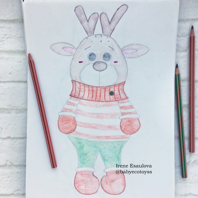 (Nr. 71), für das Geweih - braun (Nr. 70), für die Ohren - rosa (Nr. 74), für die Wangen –