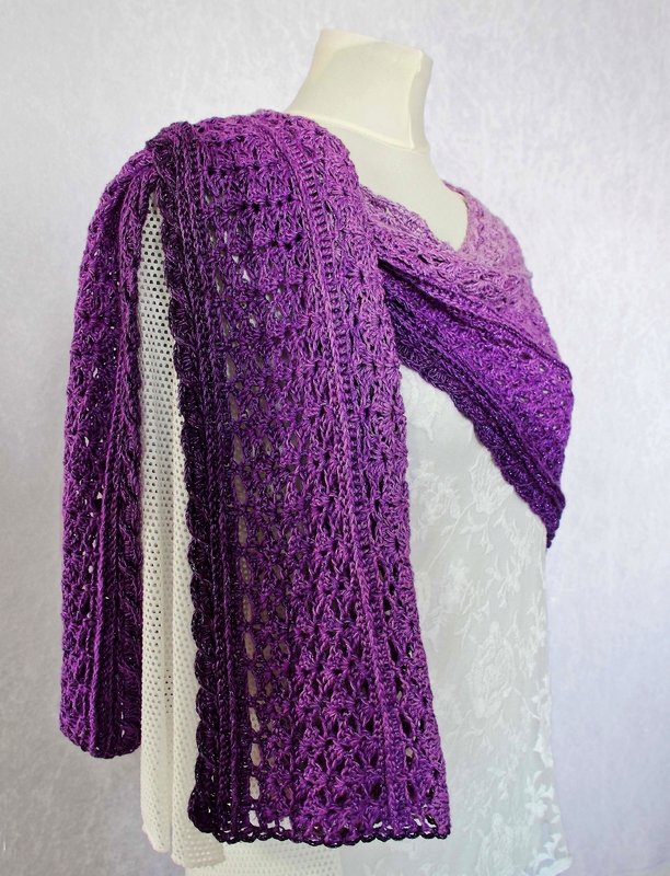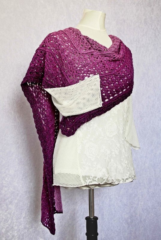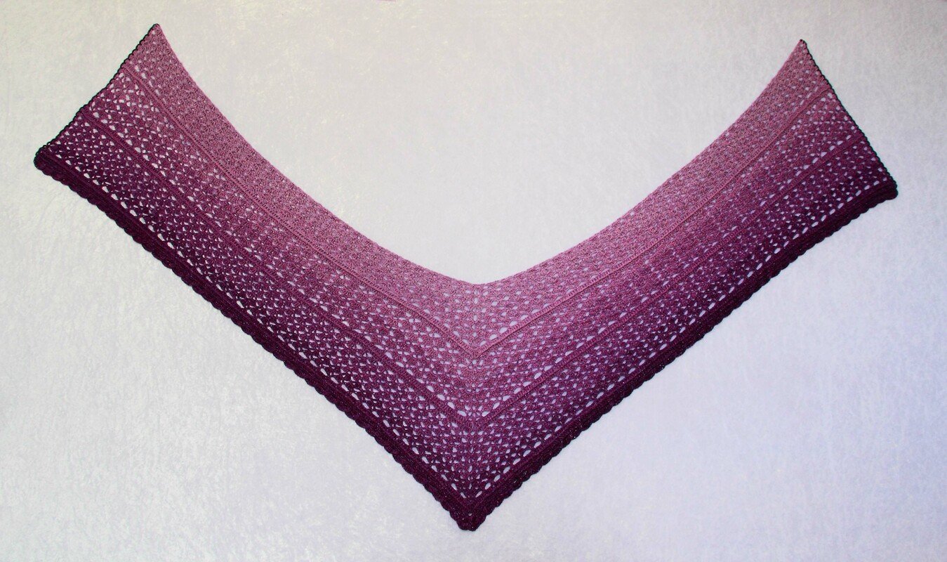 Die Häkelanleitung für diesen v-förmigen Schal umfasst 15 Seiten. Sie enthält eine ausführliche schriftliche Anleitung, detaillierte und professionell erstellte Häkelschriften sowie Fototutorials und zahlreiche Bilder.
