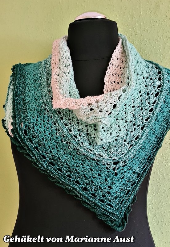 Bitte beachte und respektiere mein Copyright! Gib diese Anleitung nicht weiter und lade sie nicht auf andere Plattformen hoch. Poste auch keine Auszüge daraus. Möchtest du fertige Tücher verkaufen? Dann schreib mich einfach an, in der Regel habe ich kein Problem damit.