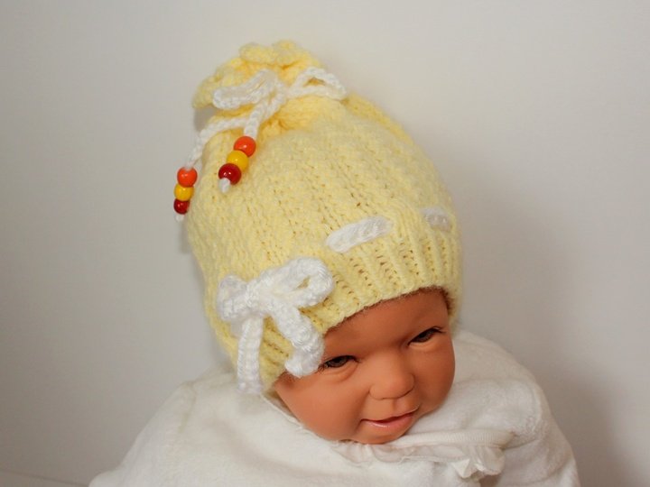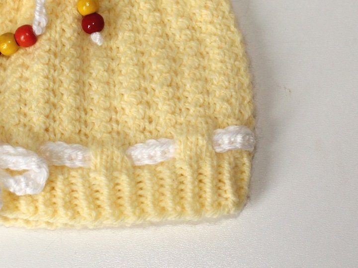 Die Lochmusterreihe mit dem Schleifchen direkt nach dem Bündchen kann bei Nichtgefallen weggelassen werden und sofort mit der Musterreihe begonnen werden. Auch für nicht geübte Strickerinnen dürfte es kein Problem sein, das Muster nachzuarbeiten, da die relevanten Arbeitsschritte bebildert sind.