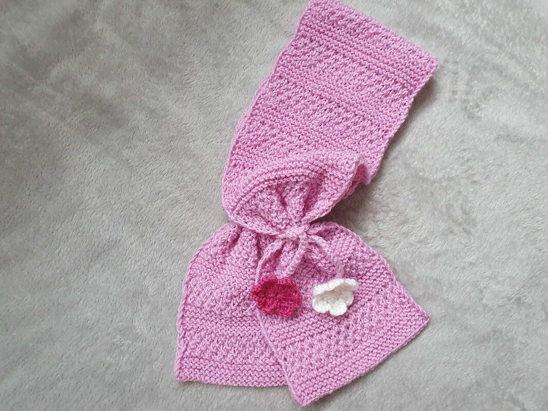 Der Schal ist gestrickt für Kinder im Alter von 3 bis 4 Jahren, aber durch ein paar Maschen mehr oder weniger in Länge oder Breite für jede Größe machbar.