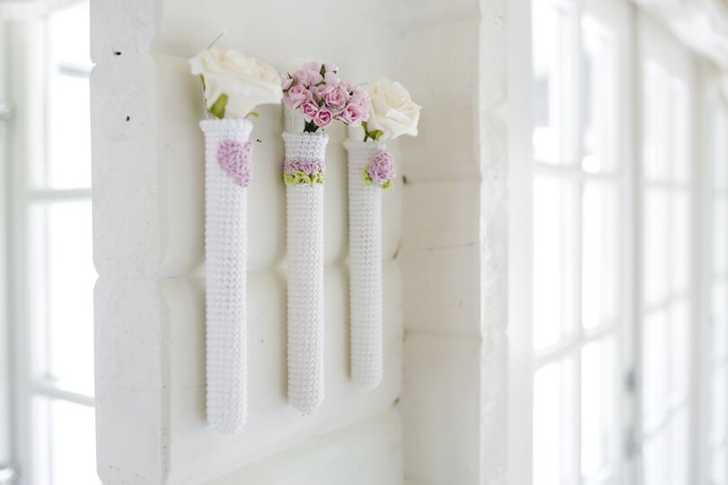 Häkelanleitung für eine wunderschöne Reagenzglas-Vase in 3 Varianten, gehäkelt aus festen Maschen, halben Stäbchen und Stäbchen.