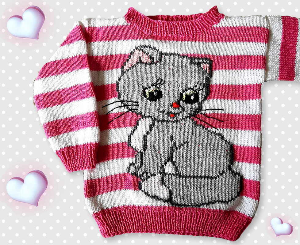 Dies ist eine Strickanleitung für einen supersüßen Bilderpulli in 2 verschiedenen Größen. Die Anleitung ist ausführlich beschrieben und es ist eine große Strickschrift zum Einstricken oder Aufsticken des Motivs dabei
