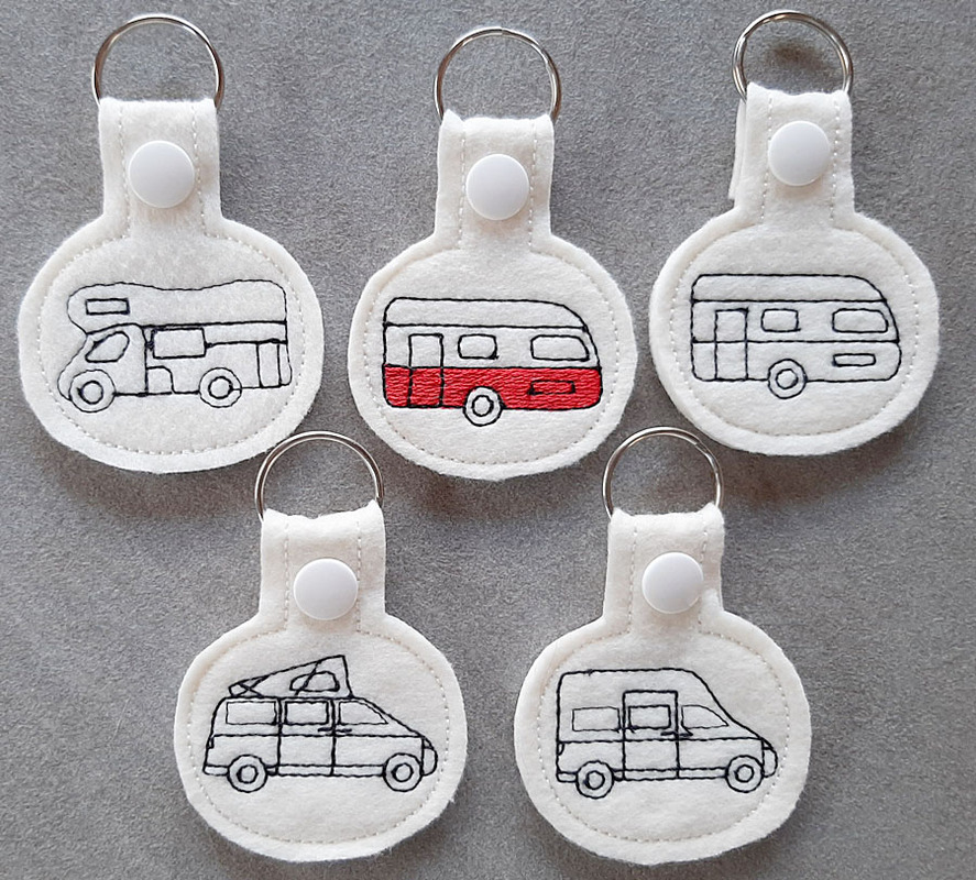 Schlüssel suchen ist ja auch immer ein Thema. Mal ist er da, mal dort und manchmal sucht man etwas länger. Diese Schlüsselanhänger sind schnell gestickt. Egal ob du mit dem Wohnmobil, Camper, Wohnbus oder Wohnwagen Urlaub machst, diese Baumler sind ein unbedingtes MUSS. Auch als Mitbringsle für einen Camper sind sie gut geeignet oder als Baumler an eine Tasche. Vielleicht hast du noch andere Ideen?