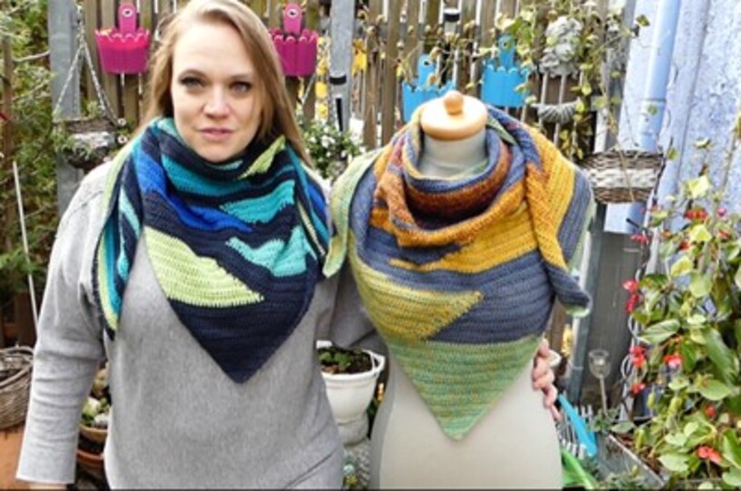 Das gehäkelte 1-2-3 Tuch ist ein ganz besonderer Hingucker und der tolle Effekt kommt dabei komplett aus dem Garn. Man häkelt einfach immer bis zur neuen Farbe. Durch die 3 Teile, dieman zusammenstellen kann man mit der Anleitung mindestens 3 unterschiedliche Tücher und unzählige Varianten nach diesem Prinzip häkeln. Durch die leuchtend bunten Farben und die flexible Zusammensetzung der einzelnen Teile kannst du dein ganz individuelles Tuch zusammenstellen. Der Phantasie sind dadurch keine Grenzen gesetzt.