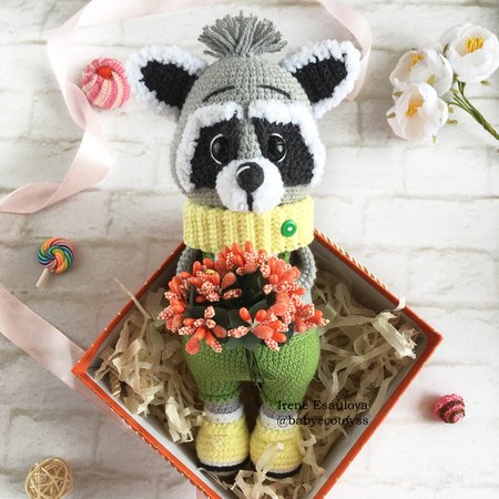 Wichtiger Hinweis! Bei der Verwendung des Garns mit einer anderen Lauflänge und Nadelstärke wird der Waschbär dementsprechend breiter bzw. größer / dünner bzw. kleiner.