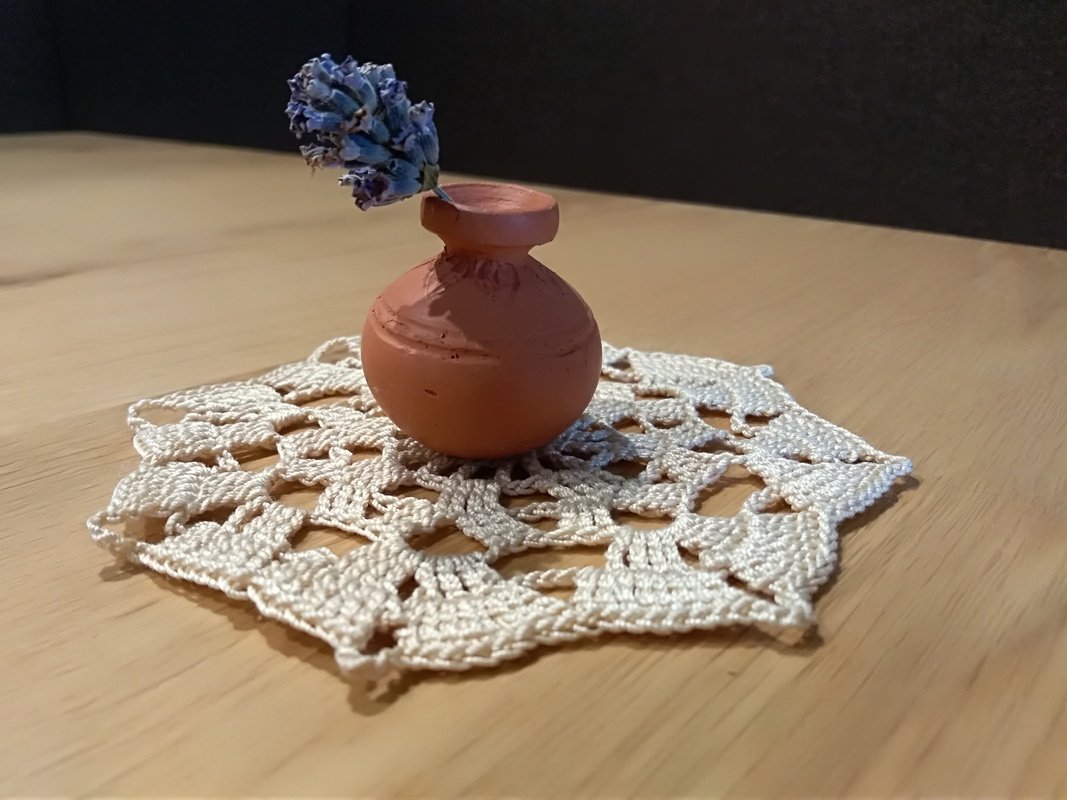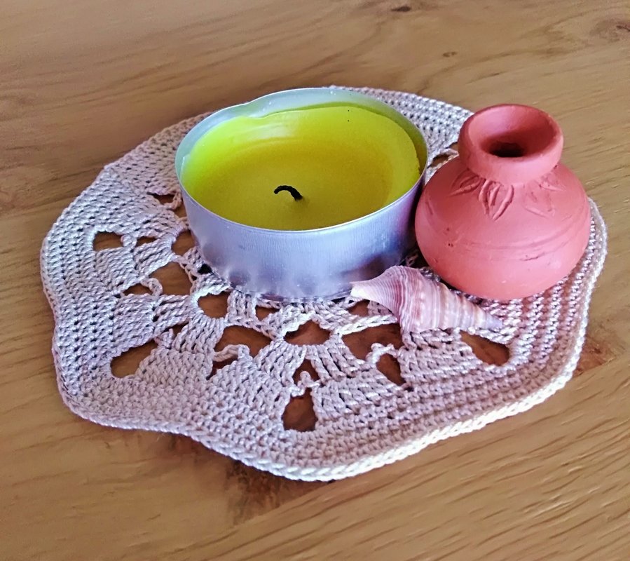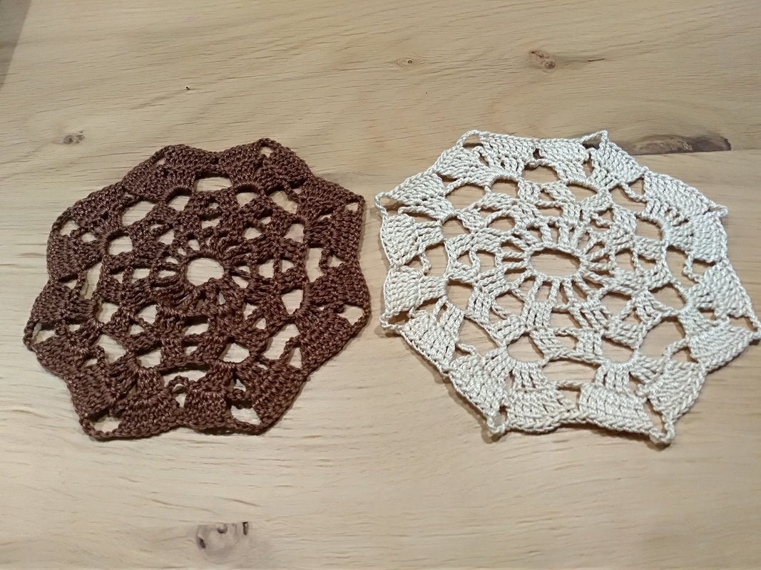 Beachte bitte, dass die Größe des Deckchens abweichen kann, wenn du anderes Garn verwendest oder eine andere Nadelstärke, wenn du fester oder lockerer häkelst als ich.