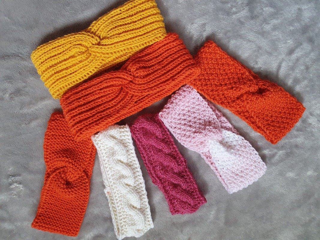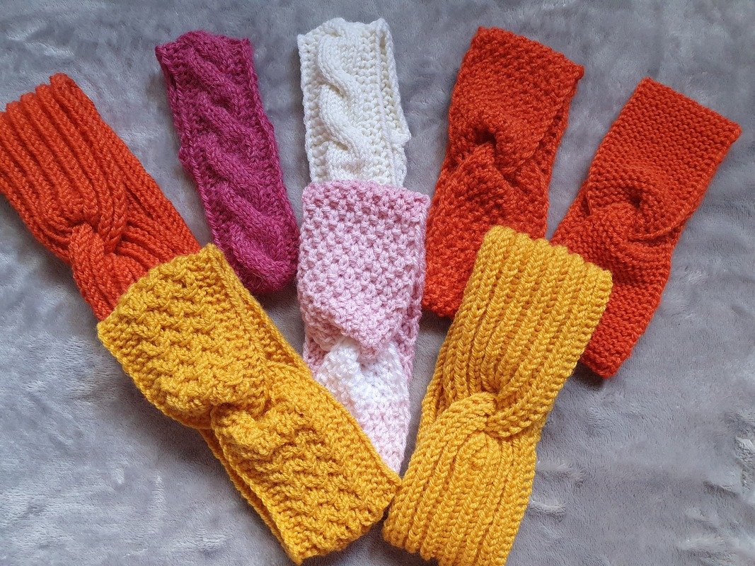 Die Stirnbänder werden in rechten und linken Maschen und manche mit zusätzlichen Umschlägen oder auch einem Zopf gestrickt.