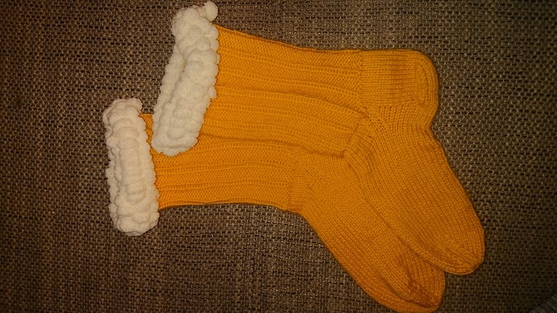 Aber ich stricke schon seit Jahren auch, Bierstulpen, diese sind besser, da man die über die Hosen machen kann.