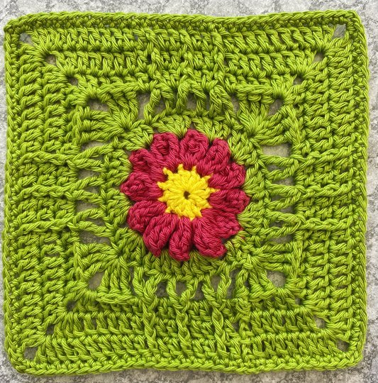 Im vorliegenden Beispiel ist das Granny Square 15x15 cm groß.