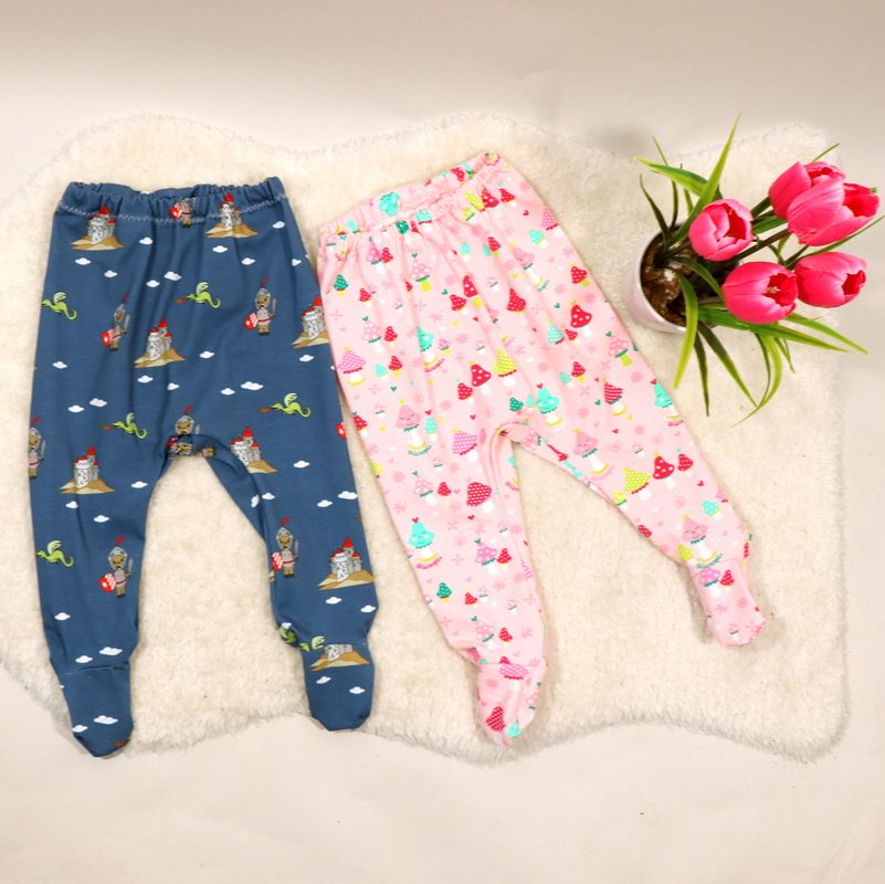 Miniklein und trotzdem niedlich angezogen: die Babyhose Aaron ist da! Eine lässige Jerseyhose mit integrierten Füßchen dran – superschnell genäht und das von Gr. 44 – 68 jeweils in Einzelgrößen.
