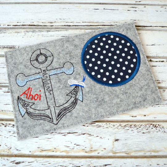 Stickdatei Mug Rug mit Anker, Untersetzer für eine Kaffeetasse oder Kerzenglas, maritimer Tassenteppich mit Anker, kleines Geschenk, schnell gestickt.