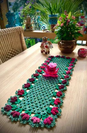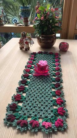 Der Tischläufer/Tischdeckchen "Blütenhain" ist doch bezaubernd und verschönert Deinen Tisch und auch gleich das ganze Zimmer!..."Blütenhain" ist auch ein prima Geschenk für einen lieben Menschen....statt ein Blumenstrauss?