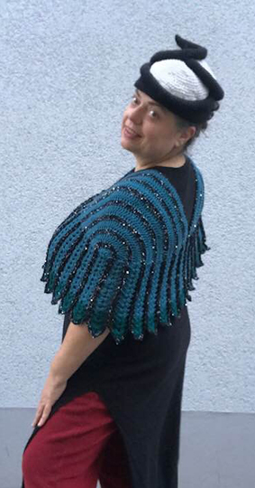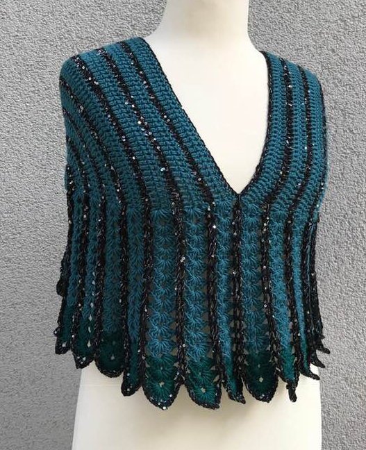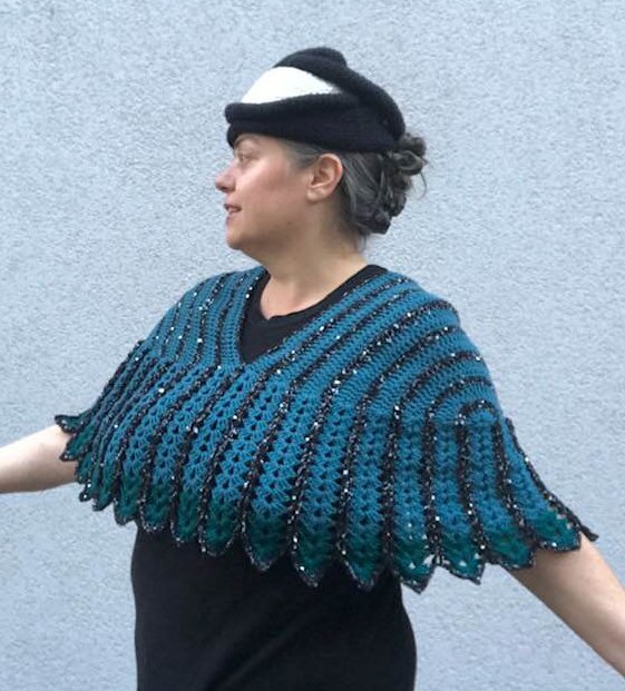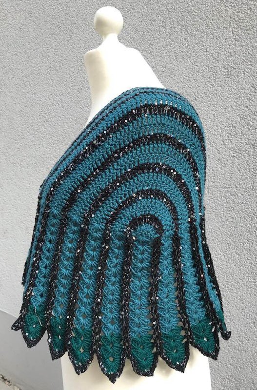 Der Schulterschmeichler "Flügeltraum" peppt jede Kleidung auf und ist auch über ärmellose Kleider sehr hilfreich , weil der dann die Oberarme geschmackvoll verdeckt !