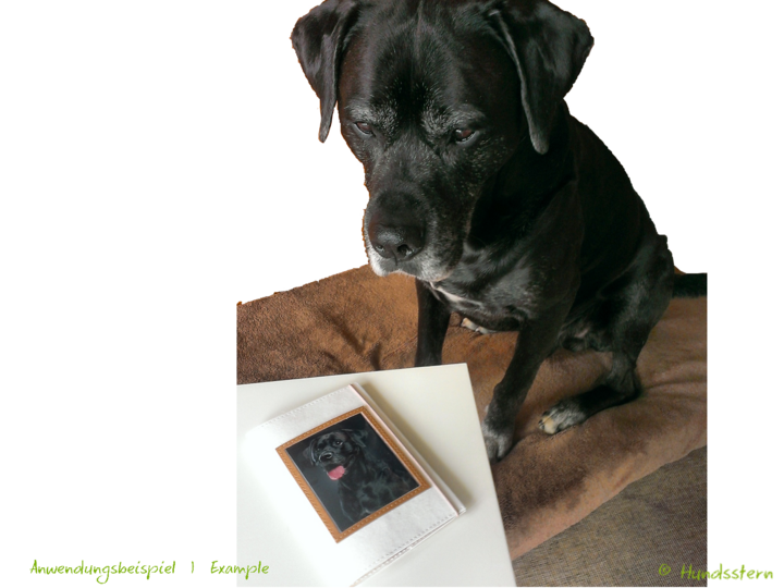 Der Wechselbilderrahmen für Ihr Foto von Hund, Katze, Frettchen auf der Vorderseite zeigt sofort, welchem Tier der Ausweis gehört.