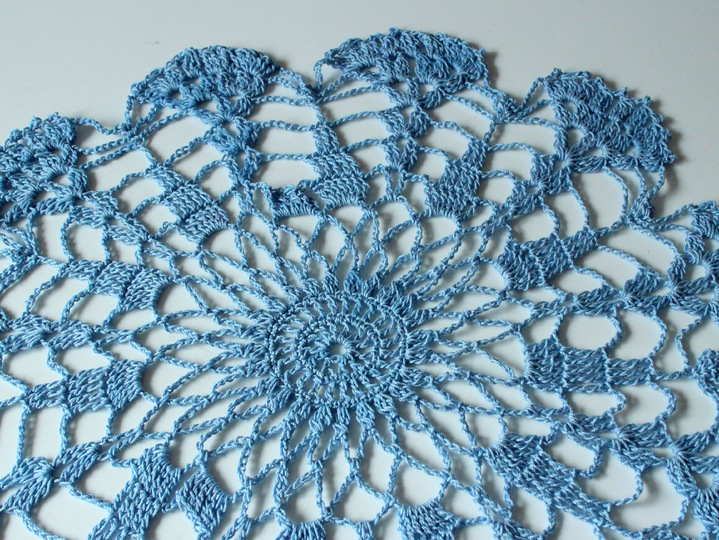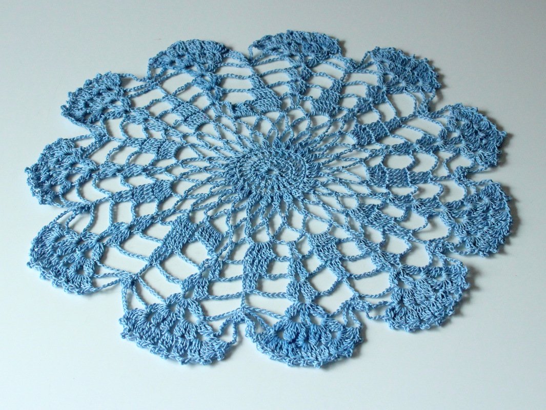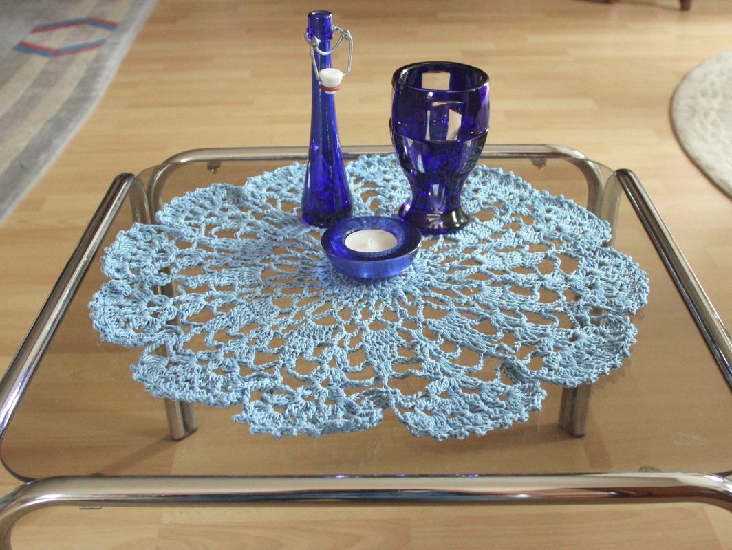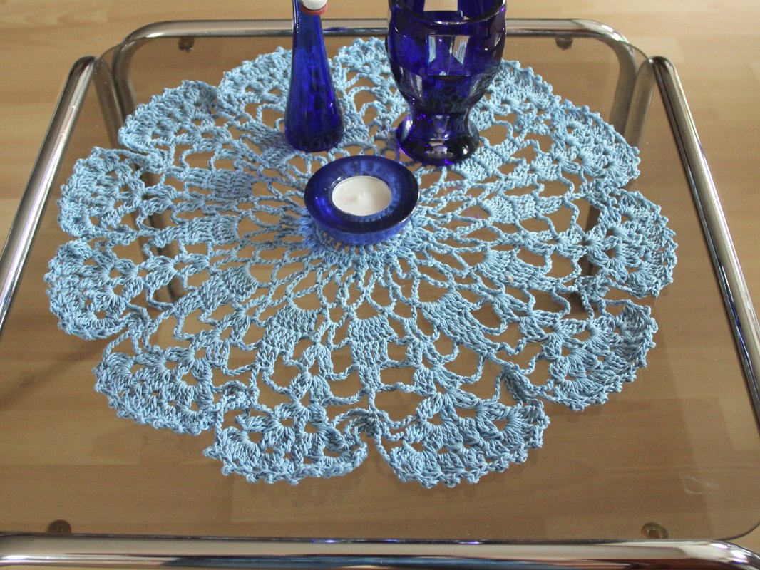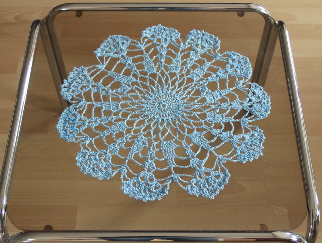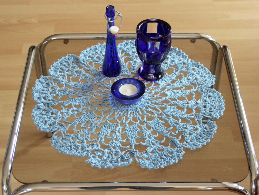 Dekoratives rundes Deckchen in Form einer großen Blüte. Schön für den Kaffeetisch oder Coachtisch.