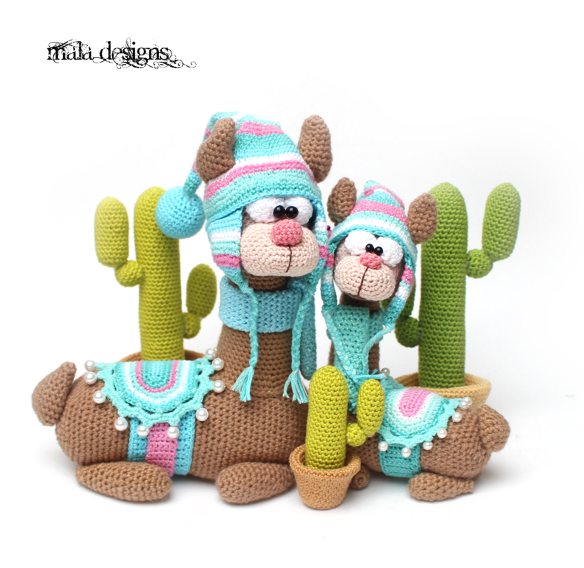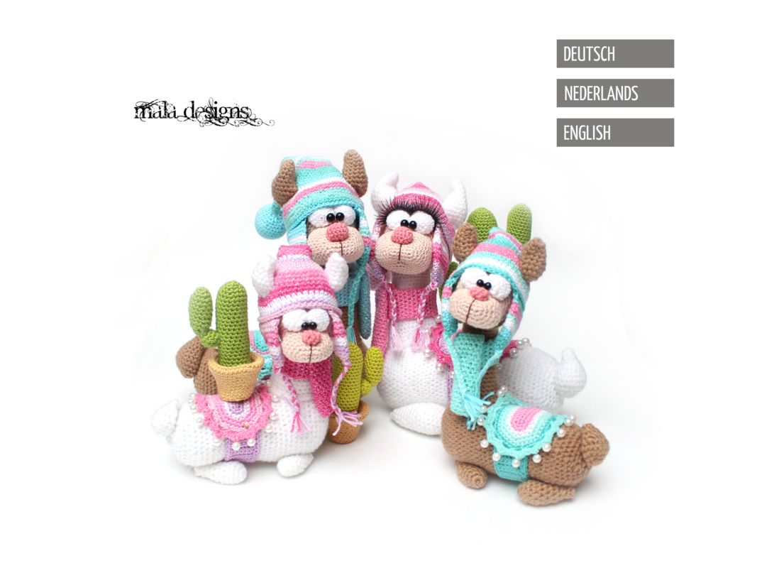 Diese Häkelanleitung beinhaltet die Beschreibung für alle Teppichluder bzw. Lamas und Kakteen. Nach Fertigstellung werden die großen Lamas ca.24 - 28 cm und die kleinen Lamas zwischen 20 - 23 cm groß. Die Kakteen werden zwischen 9 - 19 cm groß.