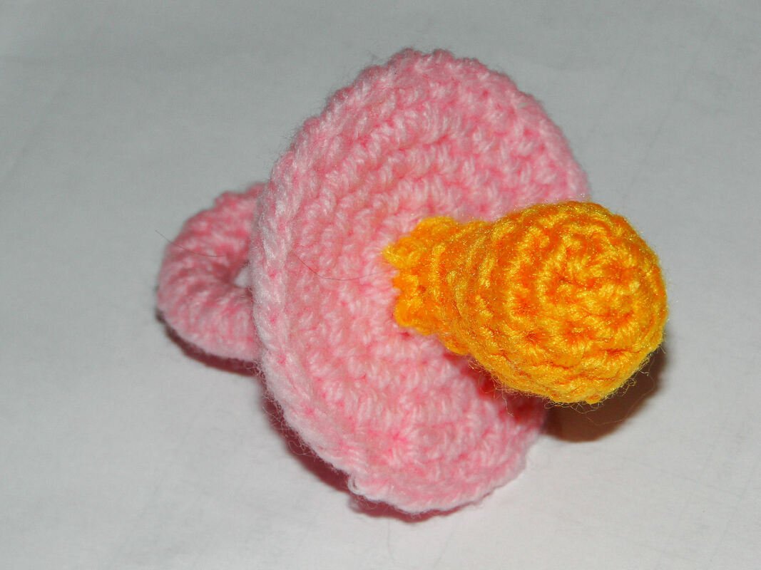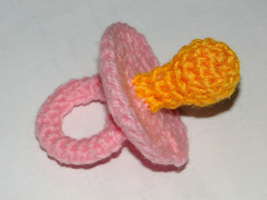 The pattern includes 4 pages of instructions with 12 photos of how to put together the pacifier.