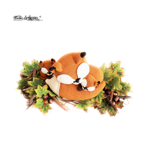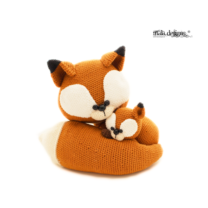 Diese Häkelanleitung beinhaltet die Beschreibung für die abgebildeten kleinen und den großen Fuchs. Nach Fertigstellung wird der größere Fuchs ca. 25cm x 24cm (LxH), und die kleineren Füchse ca. 8 cm x 12 cm (LxH) groß.