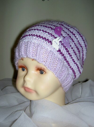 Strickt man die Mütze nach dieser Anleitung mit Nadelstärke 3, ist sie passend für Größe 62 - 68.
