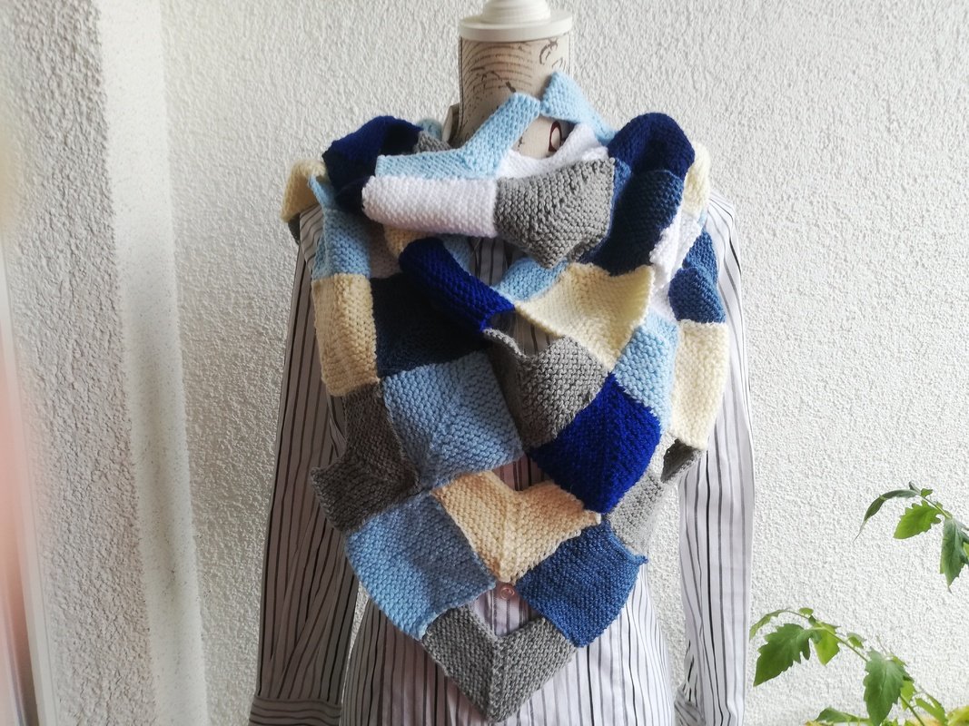 Dieses hübsche Tuch ist aus Quadraten und Halbquadraten gestrickt, somit ist es endlos erweiterbar.