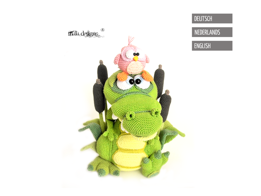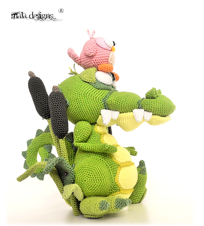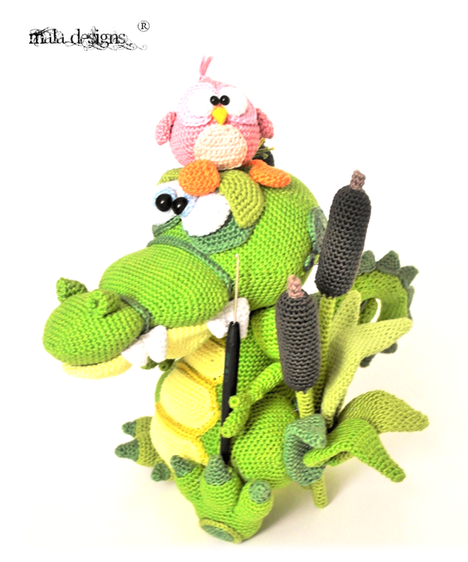 Diese Anleitung beeinhaltet die Beschreibung für die im Artikelbild dargestellten Figuren : Krokodil, Vögelchen,Rohrkolben & Blätter. Das Krokodil wird nach Fertigstellung ca 26cm groß, das kleine Vögelchen ca. 6cm.