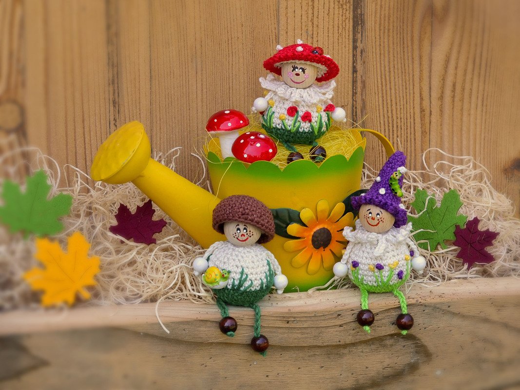 Mit dieser Häkelanleitung zeige ich dir, wie du dir diese kleinen Herbstlinge " 3er Set Pilze", bestehend aus